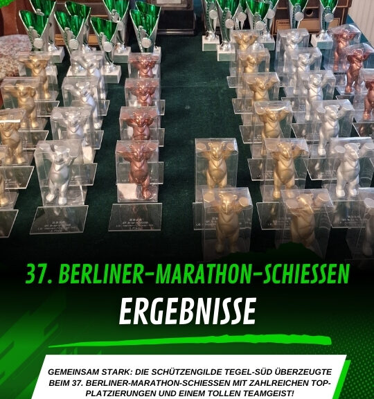 Am vergangenen Wochenende fand das 37. Berliner-Marathon-Schießen bei der Nord-Berliner Schützen-Gemeinschaft statt. Mit rund 232 Starterinnen und Startern war das Teilnehmerfeld erneut stark besetzt. Die Schützengilde Tegel-Süd war mit einer großen Gruppe von 20 Teilnehmenden vertreten und zeigte einmal mehr, dass sie zu den festen Größen bei diesem Traditionswettbewerb gehört.