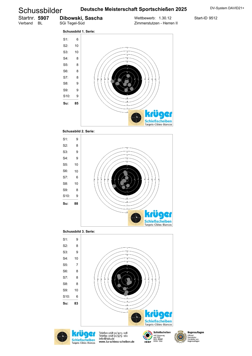 Ergebnisse Luftpistole Auflage Verbandsklasse B