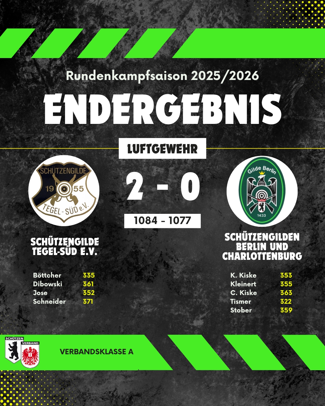 Die Mannschaften der Schützengilde Tegel-Süd e.V. sind auf gutem Weg, eine erfolgreiche Saison zu gestalten. Die Tabellenführungen in der Luftpistole Verbandsklasse B und der Luftgewehr-Auflage Verbandsklasse A spiegeln das Potenzial und die Konstanz der Teams wider.