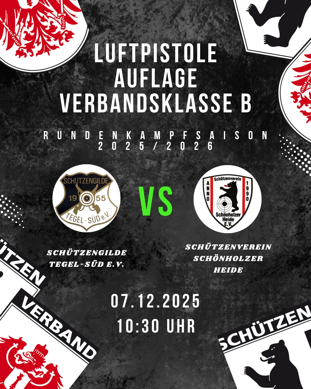 Der November brachte für die Schützengilde Tegel-Süd e.V. eine Mischung aus spannenden Erfolgen und Herausforderungen. Besonders in der Luftpistole Verbandsklasse B sowie der Luftgewehr Auflage Verbandsklasse A konnten starke Leistungen gezeigt werden. Hier ein Überblick über die Wettkämpfe und Ergebnisse unserer Mannschaften: