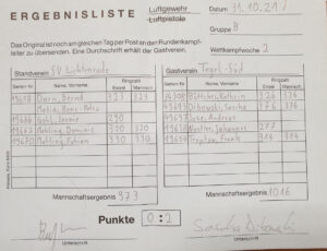 Angeführt vom Mannschaftskapitän Sascha Dibowski mit tollen 376 Ringen konnten wir die Punkte aus Lichtenrade entführen und eine klare Ansage in Richtung Staffelsieg machen.