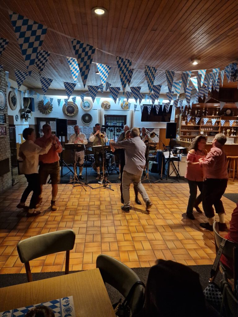 Der Vereinsraum war wieder liebevoll in blau-weiß geschmückt und verbreitete ordentlich Oktoberfest-Flair. Für musikalische Unterhaltung sorgte – bereits zum fünften Mal – unsere bewährte Hausband, die mit ihren mitreißenden Klängen für ausgelassene Stimmung und eine stets gut gefüllte Tanzfläche sorgte. Mit ihren bekannten Melodien animierte sie das Publikum immer wieder zum Mitklatschen, Schunkeln und Mitsingen – ganz so, wie es sich für ein echtes Oktoberfest gehört.