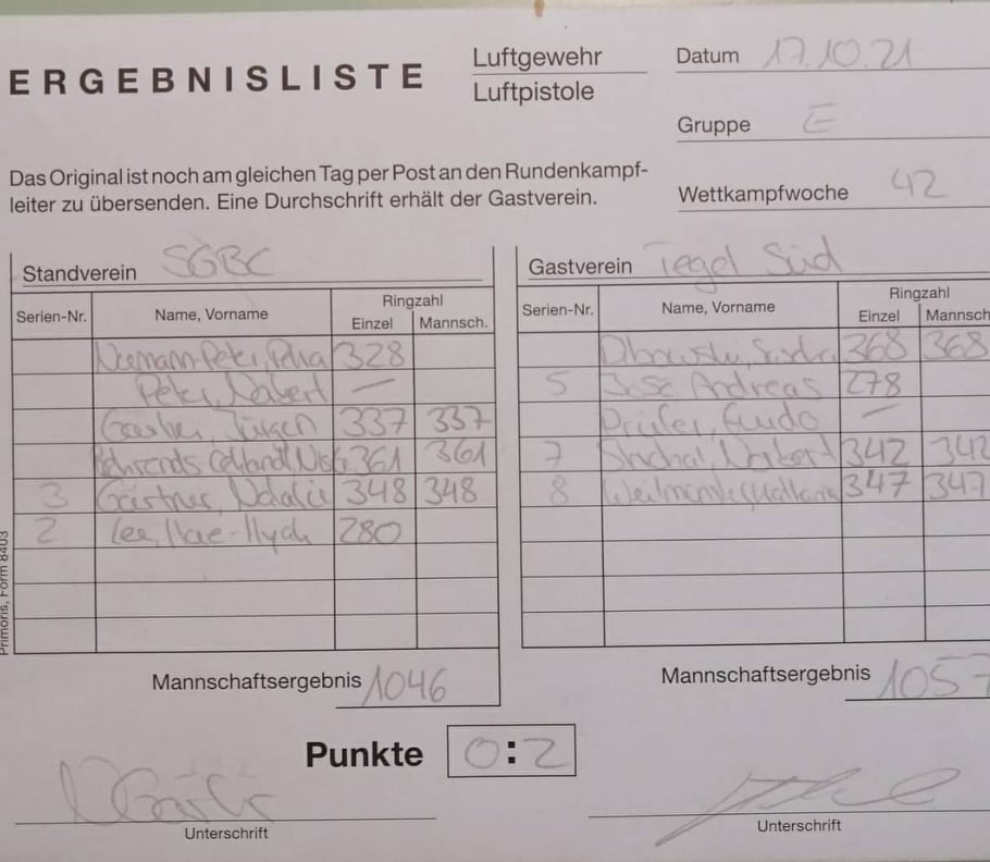 Während unsere Auflageschützen mit 874-860 die Punkte schon mal den Stand aufgewärmt haben wollten unsere Pistoleros direkt anschließen und konnten sich ebenfalls die Punkte durch einen 1057-1046 Sieg sichern.